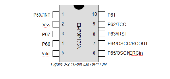 EM78P173N 是一款采用低功耗、高速 CMOS 技術(shù)設(shè)計(jì)和開(kāi)發(fā)的 8 位微處理器。它具有片上 1K´13 位電氣一次性可編程只讀存儲(chǔ)器 (OTP-ROM)。該設(shè)備提供了一個(gè)保護(hù)位,以防止入侵用戶的 OTP 內(nèi)存代碼。還提供三個(gè)代碼選項(xiàng)詞,以滿足用戶的需求。