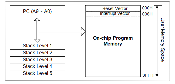 ? 根據(jù)設(shè)備類型,R2 和硬件堆棧為 10 位寬。 其結(jié)構(gòu)如下圖所示。