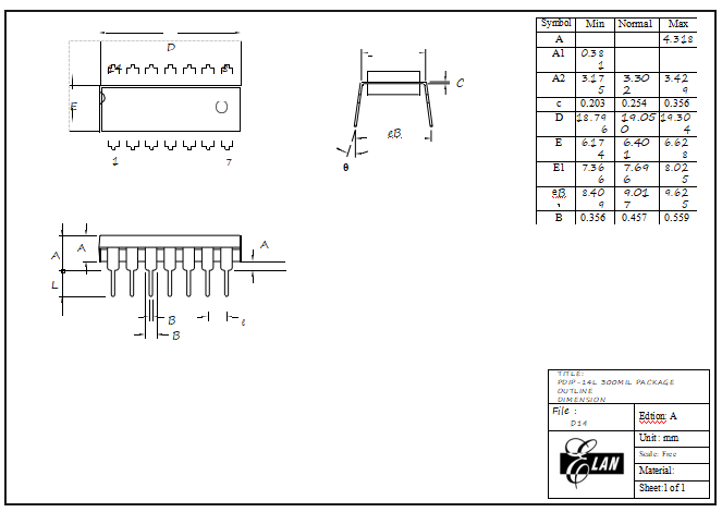 B-1a EM78P173N 14 引腳 PDIP 封裝類型