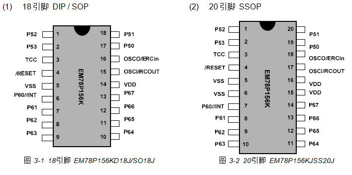 · 18引腳SOP 300mil : EM78P156KSO18J