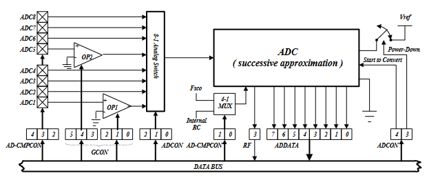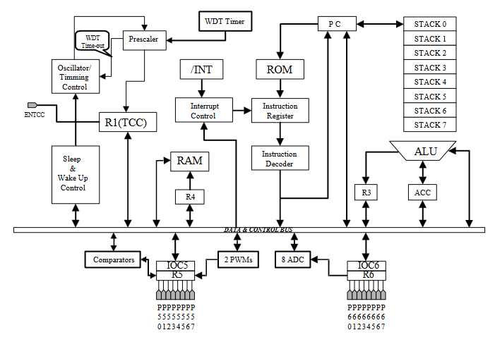 ·8位實時時鐘/計數(shù)器 (TCC),具有可選擇信號源、觸發(fā)沿河溢出中斷功能