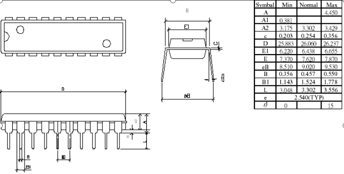 20引腳塑封雙列直插封裝(PDIP) — 300 mil