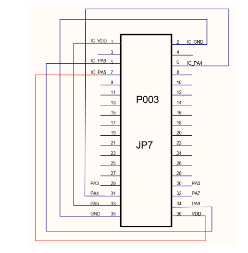 注:跳線時(shí),VDD 和 PA5 需要互換,即燒錄器 VDD 引腳連接到 IC PA5 引腳,燒錄器 PA5 引腳連