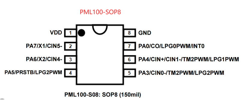 一個(gè)8位單片機(jī),如PML100-S08。