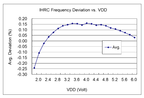 IHRC 頻率與 VDD 關(guān)系曲線圖(校準(zhǔn)到 16MHz)