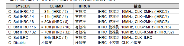 系統(tǒng)時(shí)鐘= IHRC/8 = 2MHz