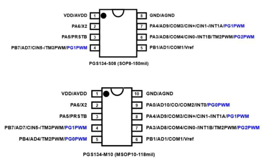 PGS134應(yīng)廣單片機(jī)8bit MCU帶12bit ADC&EEPROM,KW 程序儲(chǔ)存器,256 Bytes 數(shù)據(jù)存儲(chǔ)器(128*16),對(duì)所有帶喚醒功能的IO,都支持兩種可選擇地喚醒速度