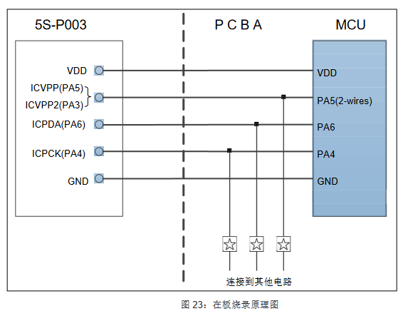 圖 23 中的‘☆’可代表電容或電阻。用于隔離燒錄引線和其他電路。電阻應(yīng)≧10KΩ,電容應(yīng)≦220pF。