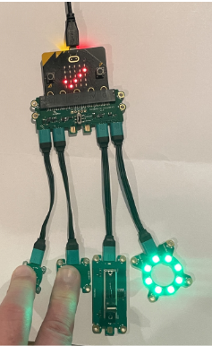 將編程器的正確引腳連接到 Jacdac 模塊上的編程頭/測試點 — 編程器上的顯示屏會顯示是否已連接。