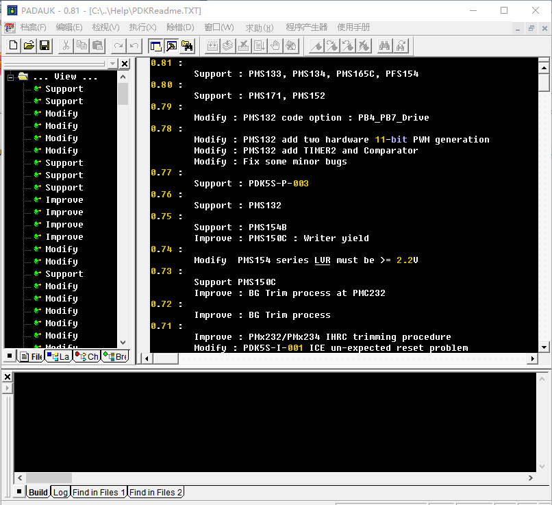 應廣單片機PADAUK開發環境V0.81版本是一個專為PADAUK系列微控制器設計的集成開發環境(IDE),適用于嵌入式系統開發者