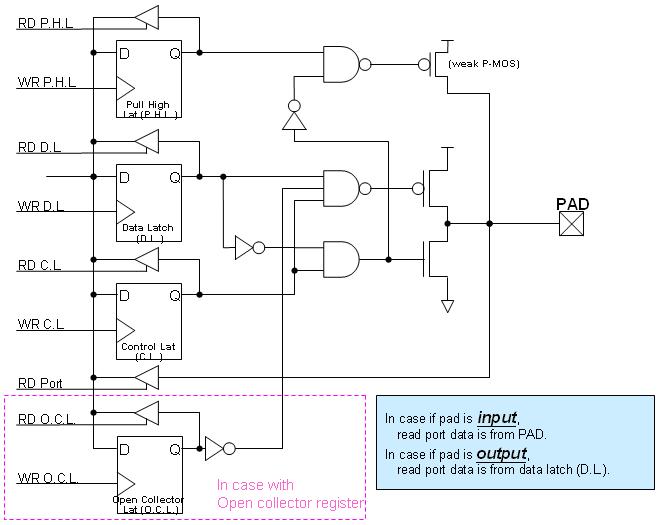 附注: (1): 至于其它的 IO 口,都有輸出入切換與選擇 Pull High 的功能。