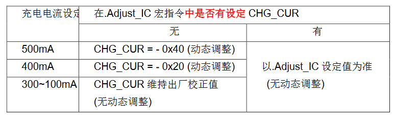 具有燒錄時針對充電電流校正值動態調整,則需用戶自行修改宏指令內容。