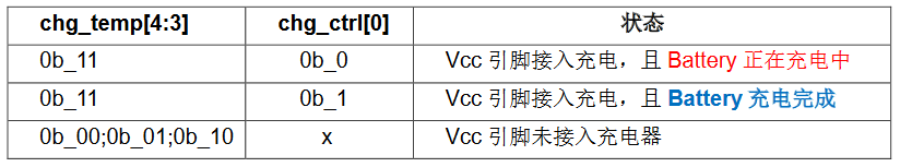 chg_ctrl[0] = 1,即可判定電池充滿電,并在產品的滿電顯示上做出滿電指示。當然也可以在