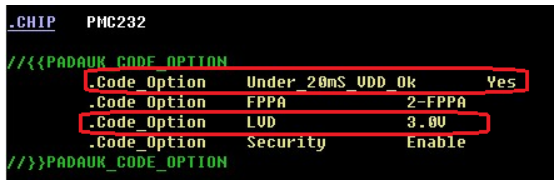 在 IC 的 Code Option 中有選項(xiàng): .Code_Option Under_20mS_VDD_Ok。