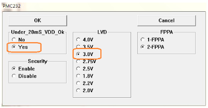 在低壓時(shí)就執(zhí)行高速開機(jī),造成誤動(dòng)作。這時(shí)需要設(shè)置 (Under_20mS_VDD_Ok = NO)。