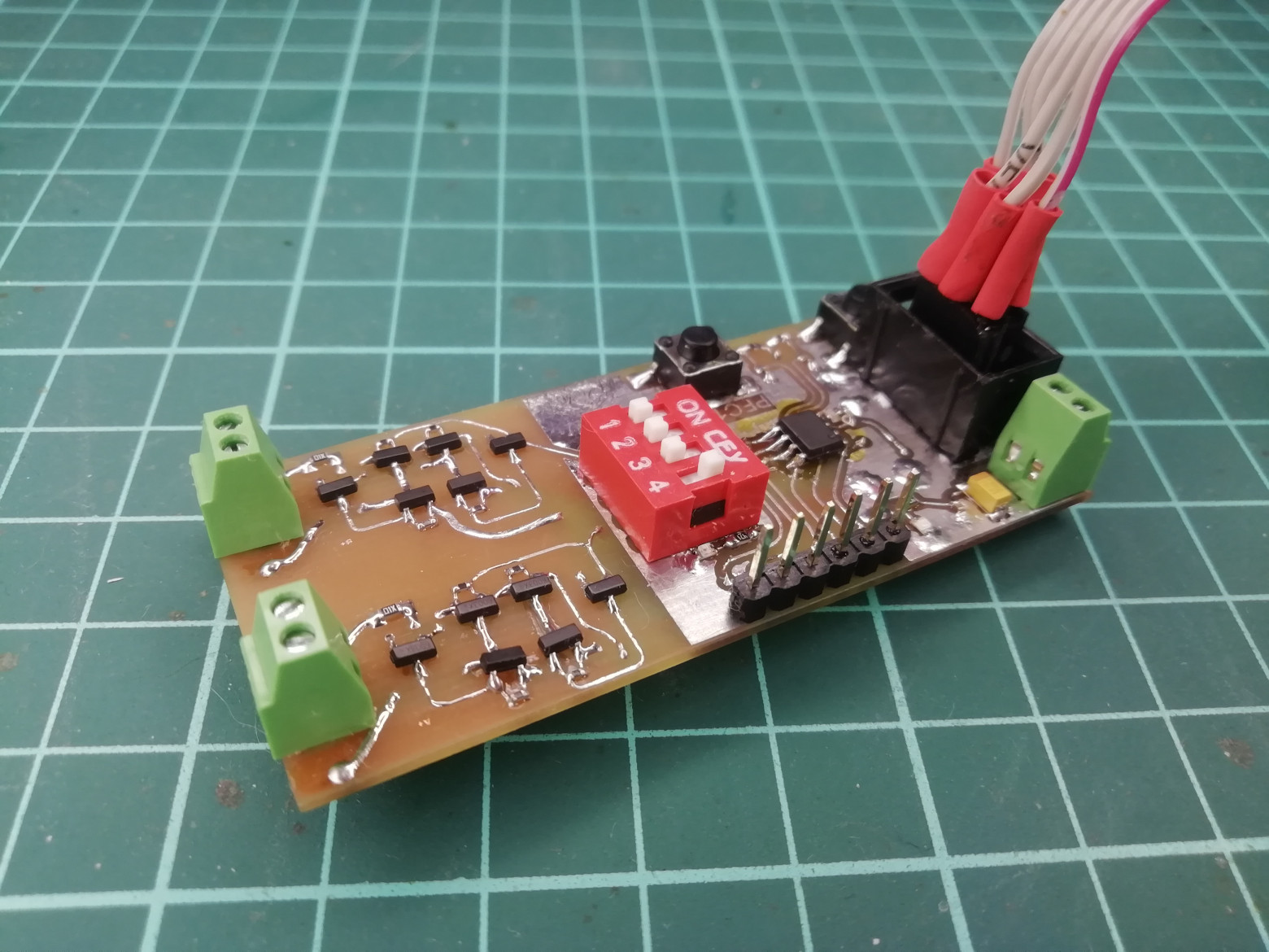 XS5(IDC-6)連接器實(shí)際上用于連接到程序員。在板上還增加了一對(duì)用于負(fù)載切換的H橋(目標(biāo)費(fèi)用中的微控制器將控制雙極步進(jìn)器)。
