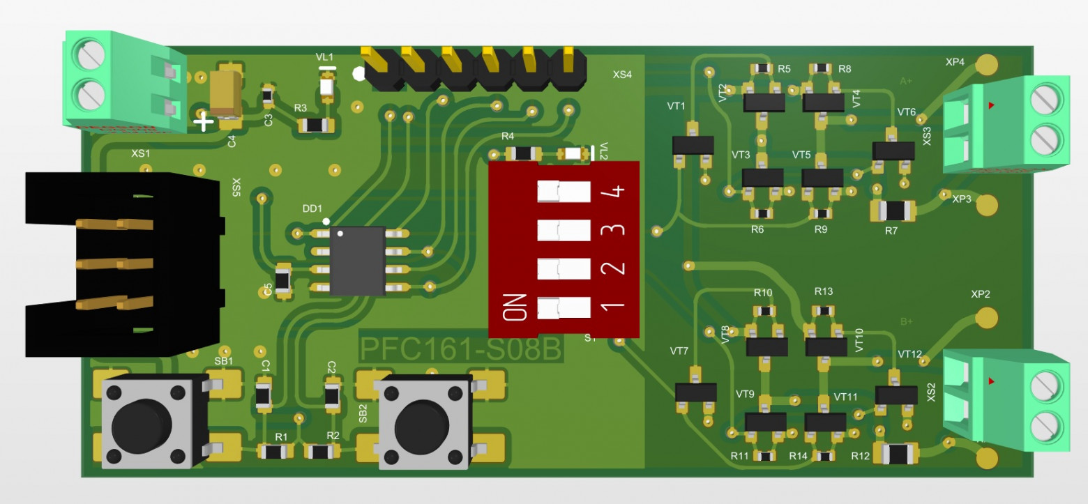 首先,我嘗試實(shí)現(xiàn)一個(gè)簡(jiǎn)單的算法,使用位于PCB上的驅(qū)動(dòng)程序來(lái)控制步進(jìn)電機(jī)。通過(guò)點(diǎn)擊其中一個(gè)按鈕,它應(yīng)該在給定的步驟上向一個(gè)方向旋轉(zhuǎn),通過(guò)按下另一個(gè)按鈕 - 在相反的方向上采取相同數(shù)量的步驟。由于我在C上為大多數(shù)項(xiàng)目編寫固件,因此對(duì)于這些控制器,我選擇了Mini.C,希望它更容易習(xí)慣它。